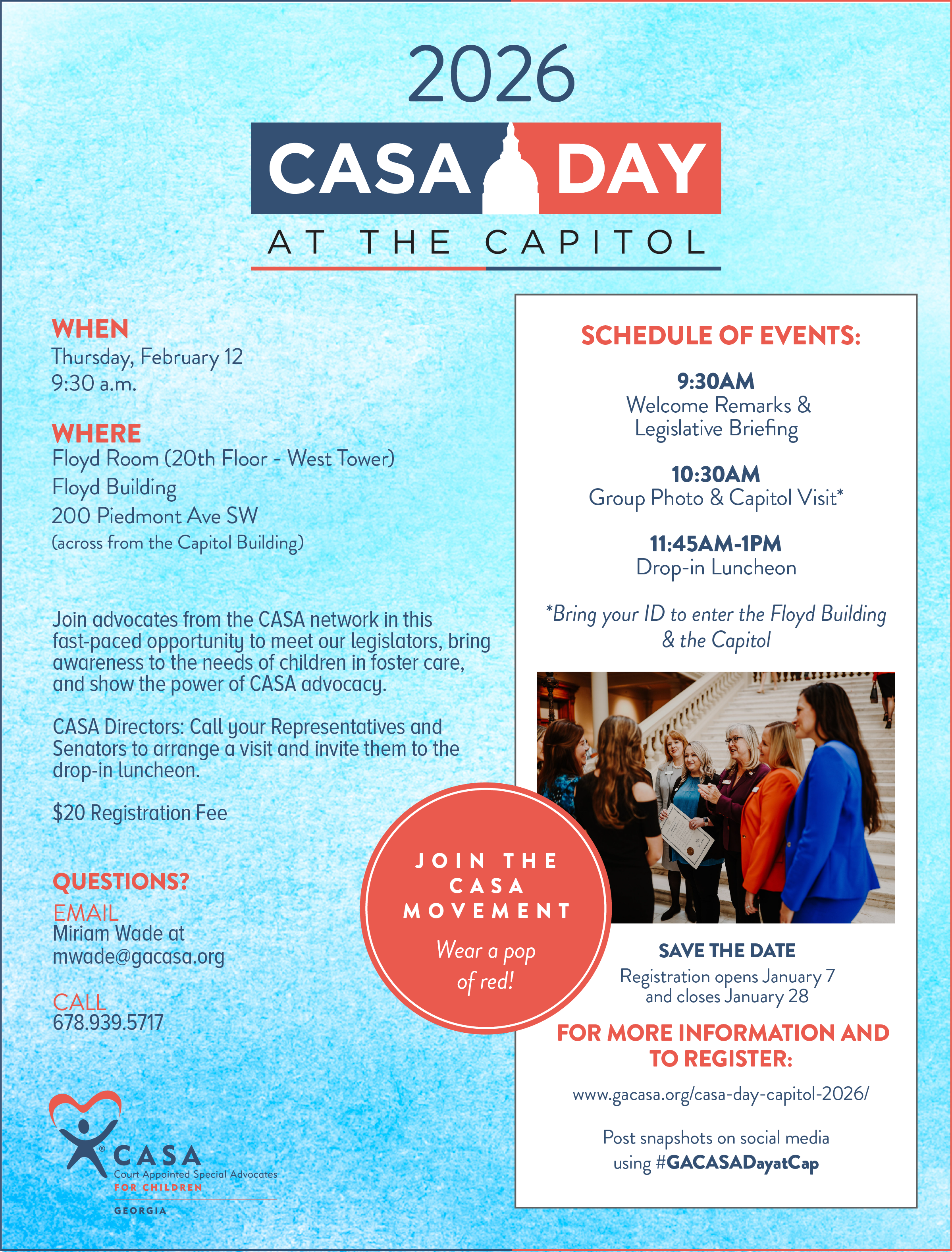 Be sure to use #GACASADayatCap when posting on social media about the event. We’re asking everyone to wear a pop of red for the day!